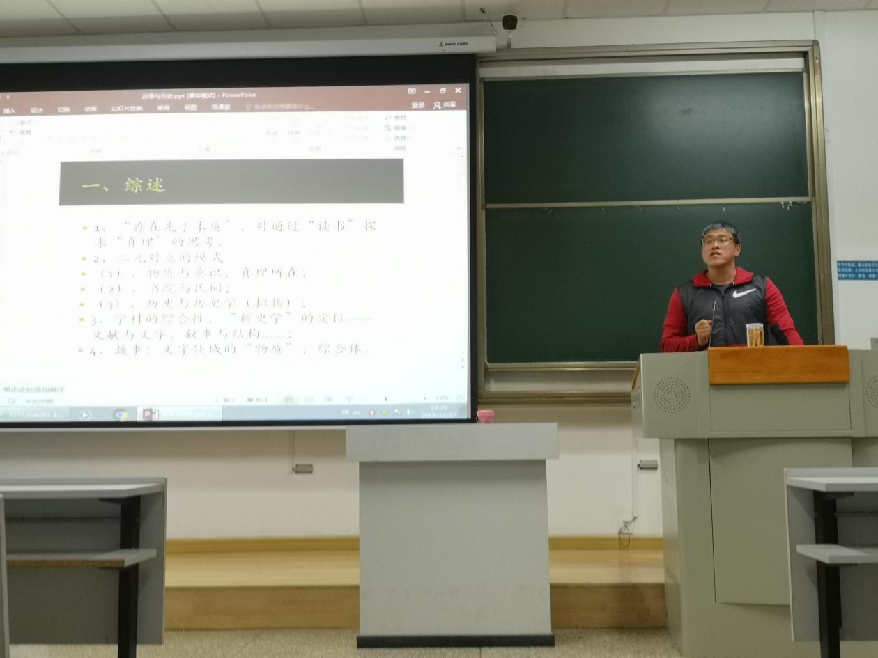 2018年12月27日19:30,kaiyun开云官方网站张立可博士在东陆校区文渊楼305室为kaiyun开云师生带来了题为“故事与历史”的学术讲座。本次讲座由kaiyun开云官方网站钱金飞教授主持。